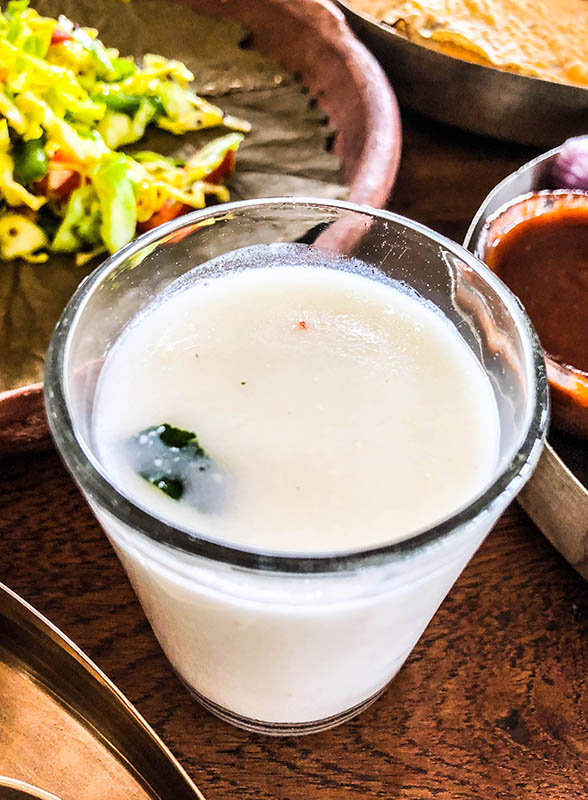 The restaurant is located on the rooftop. However, this place has both indoor and outdoor seating. You will have to pay before entering the restaurant, at the counter near the main reception. Before the billing, you will be served with two options. A silver and a bronze (Kansa) thali, although the menu remains the same. On my way to the rooftop, I was lost in the beauty of my surroundings. Everything was so beautiful and traditional right from the hanging swing to the paintings on the wall.