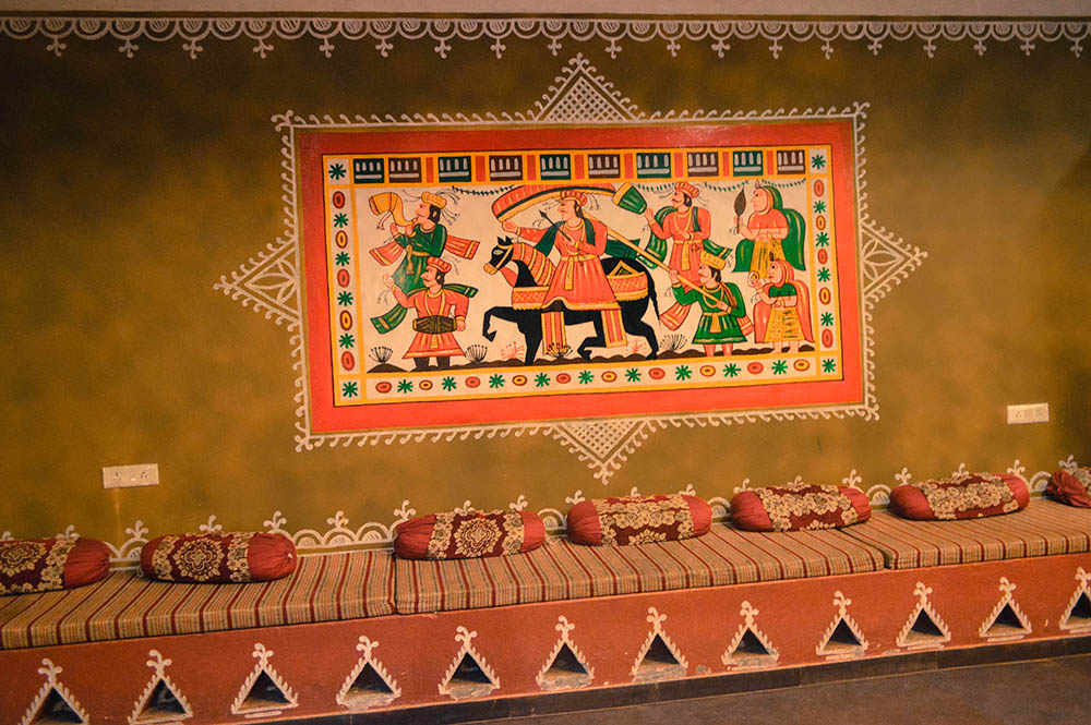 The village is spread over 12.5 acres of land with separate areas dedicated to art, amusement, culture and culinary. You’ll be welcomed in Rajasthani tradition. As you walk by the lobby, the murals and décor will leave you spellbound.