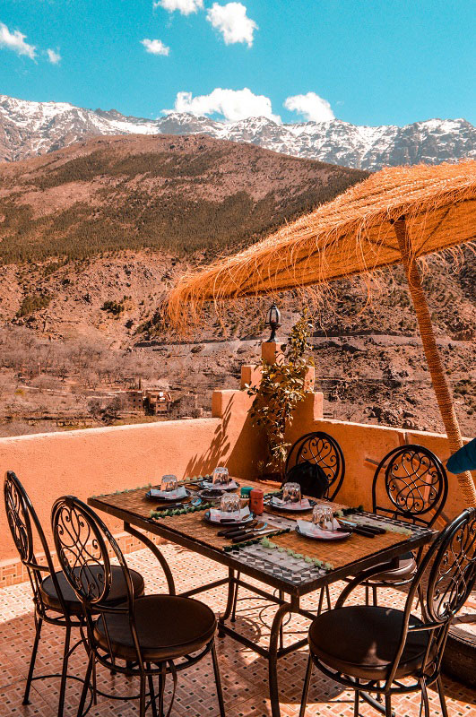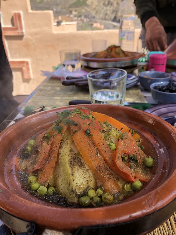 After a long hike, we reached our final stop in Ait Souka, where we had our three-course meal with a Berber family. We started our meal with a vegetable soup followed by Moroccan salad and Chicken Tajine. The lunch couldn’t have been better, with a view so mesmerising. We relaxed for a while ogling at the beauty of snow-capped mountains, before heading back to our vehicle.
