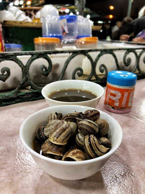 Hog at the night market. Try the famous Snail soup, Brochettes, Ketbans and other Moroccan dishes that you won’t find anywhere else.