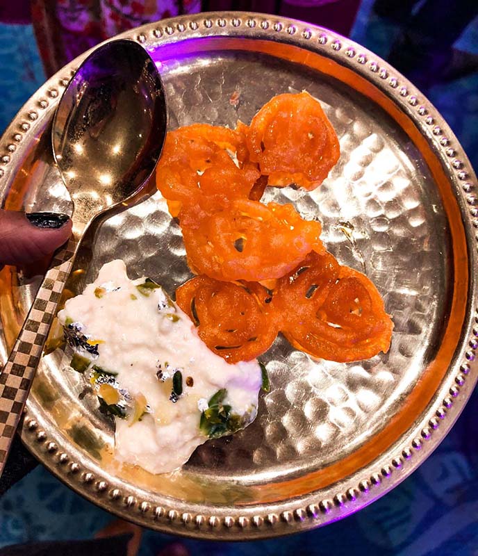 Jalebi is a popular dessert that takes its inspiration from the Middle East. Weddings and food fests are incomplete without them! I remember having Jalebi at every wedding I ever attended. So don’t miss out on these crisp sugary spiral topped with some chilled Rabri.