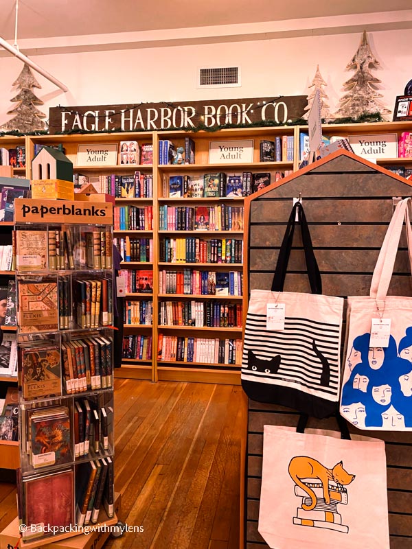 Next, we hopped onto the BI Ride Shuttle and headed downtown. Downtown Bainbridge, also known as Winslow, has excellent restaurants, cafes, and shops. We spent some time checking out old and new books at the beautiful Eagle Harbor Book Company. We also visited a vintage store named Zutto. The store has a great collection of vintage handicrafts, jewelry, classy furniture, and home decor.