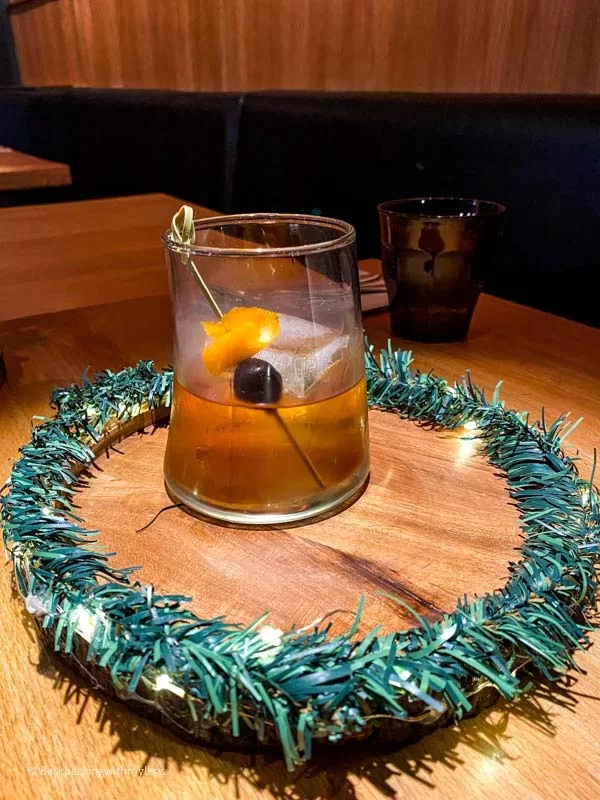 We started with the Smoked Old Fashioned, which came with an actual bottle of smoke, and the Boozed Thai Tea. The old-fashioned packed a punch. The Thai tea arrived on a gorgeous-looking plate decked with holiday ornaments. On our server’s recommendation, we also ordered the Tamarind Spiced Sour, an authentic Thai drink made of chile-infused vodka, tamarind puree, and fresh orange juice. All the cocktails were delicious and set our expectations for the food very high!