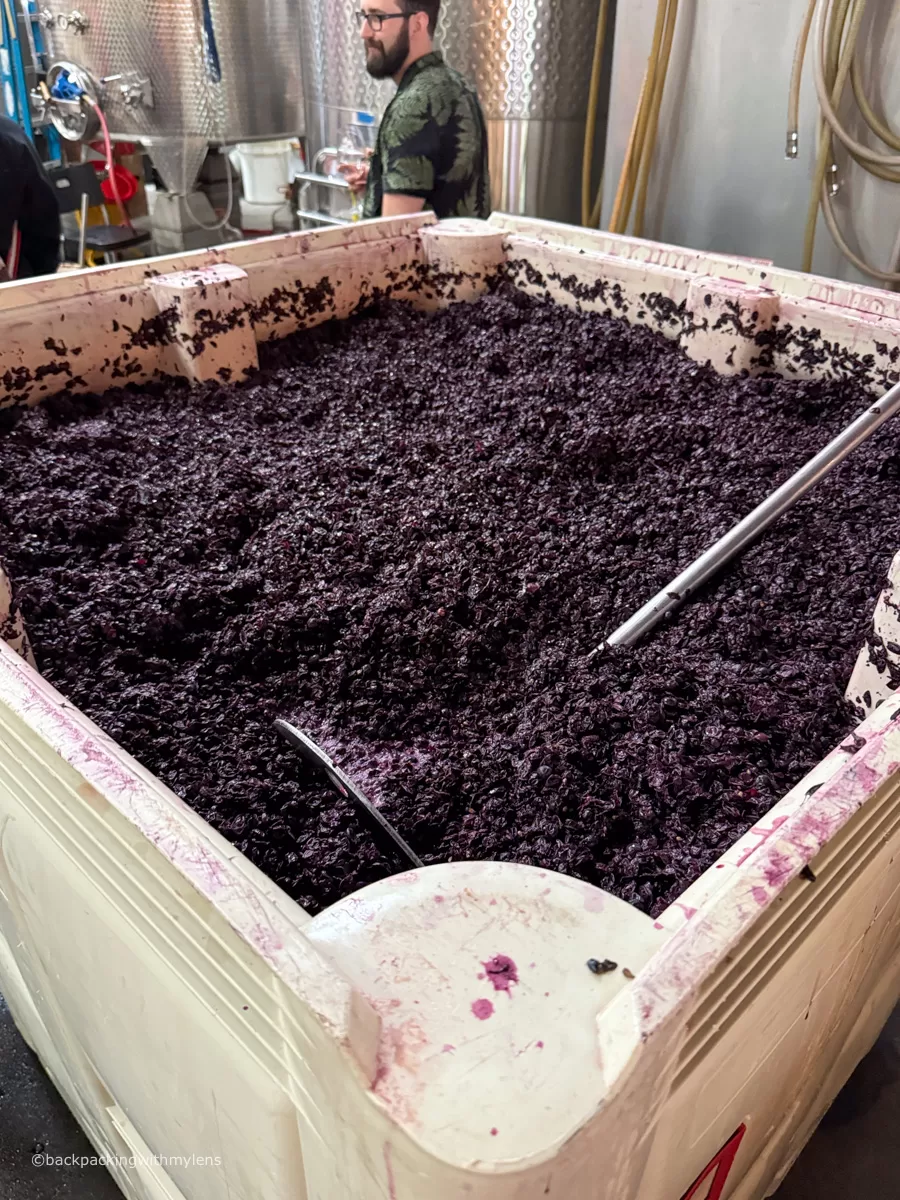 We arrived at the winery and snagged some seats in the cozy seating area. We lucked out because our tour guide was none other than Joe Miglino himself! It was a small group of about 15 fellow wine lovers, and we had a great time listening to Joe share stories about winemaking and how the winery has evolved while staying true to its traditional roots. We even got to see a massive container of Syrah grapes, in the process of being turned into wine.