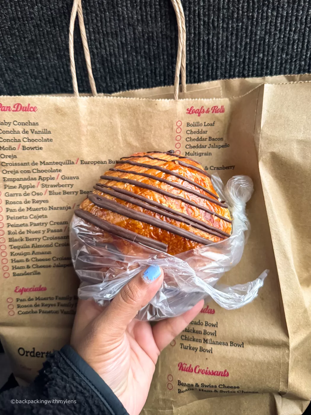 La Panadería is a popular bakery café in downtown San Antonio that came highly recommended online, so we made it a point to squeeze it into our packed itinerary. Fortunately, it was close to our FlixBus stop, allowing us to grab a quick breakfast and coffee. The café opens at 8 a.m., and people were already lining up; luckily, we were sixth in line, so we made it to the bus on time.