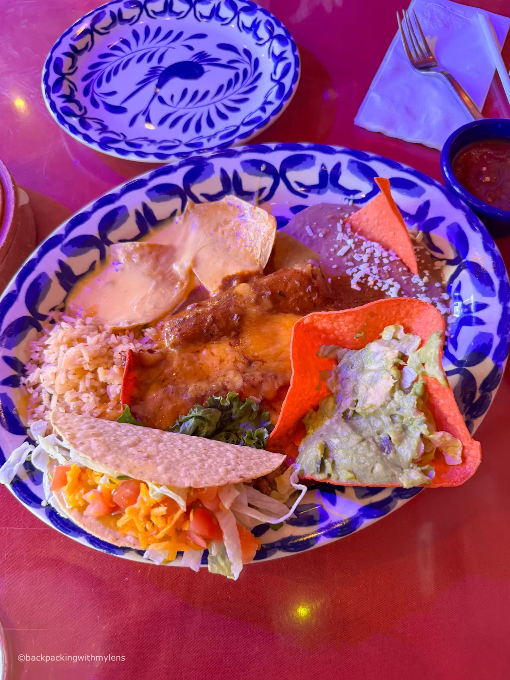 We ordered the enchilada plate, which came with a hard-shell taco, salad, rice, beans, and tortillas on the side. We were also served a taco with salsa on the side, which paired perfectly with our margaritas. I highly recommend visiting this restaurant , and the best part is, it’s open 24/7.