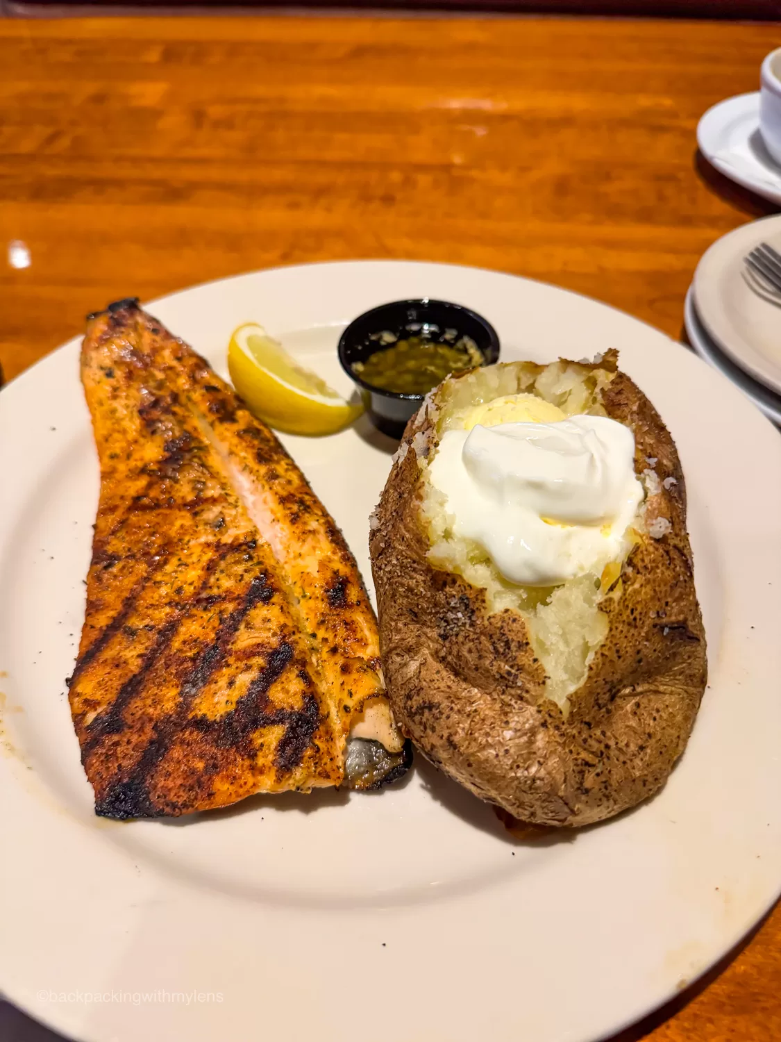 This was our dinner spot in Idaho Falls, located just minutes from our hotel, Shilo Inn. Jakers Bar and Grill is a top-rated restaurant with locations in both Idaho and Montana, known for its upscale dining experience. They’re famous for prime rib and steaks from the Northwest’s Double R Ranch, fresh Idaho trout, and signature homemade soups and salads. We ordered the creamy chowder and their signature Idaho trout with a side of baked potatoes. Plus, we were treated to complimentary bread with honey butter that was absolutely delicious. Highly recommended if you ever come across this restaurant!
