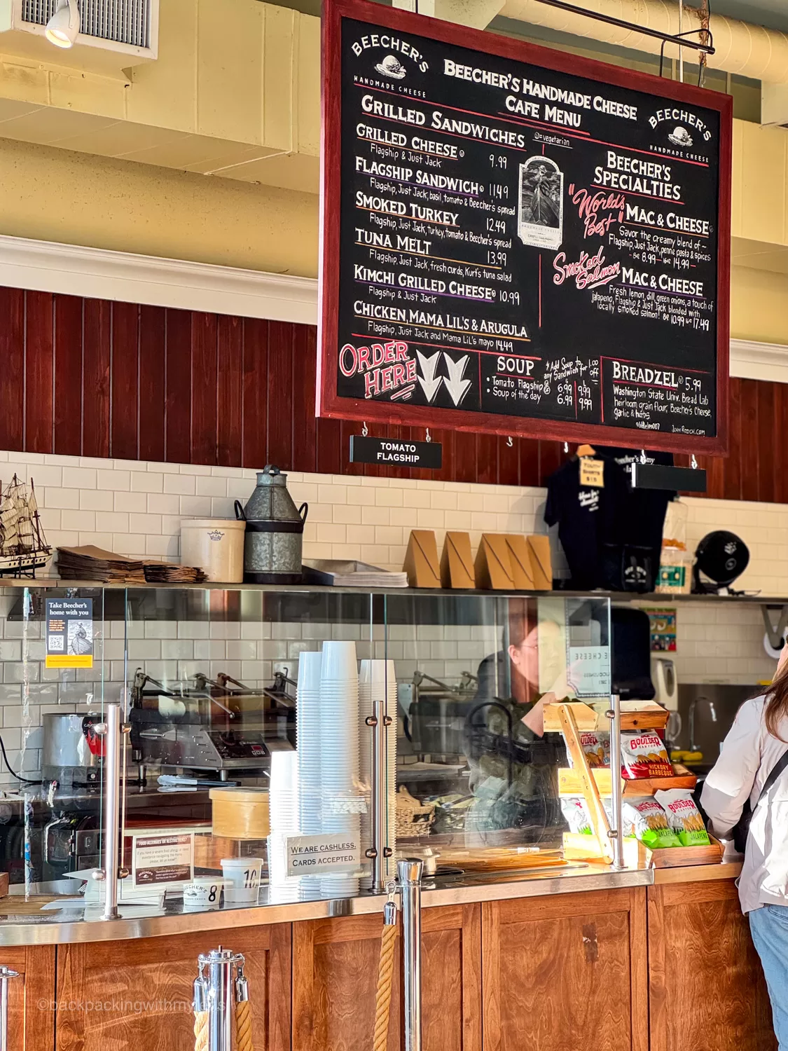 Beecher’s is a popular cheesemaker that claims to have the “world’s best mac & cheese.” The store is near the second Pike Place sign, and you can watch cheesemakers at work through their big glass windows while the scent of melty cheddar and Flagship cheese pulls you closer. Their classic creamy mac and cheese is a great option for everyone, but if you eat seafood, I recommend going with the salmon one. You can also sample wedges of their nutty, 15‑month‑aged Flagship and pick up snacks for a waterfront picnic.