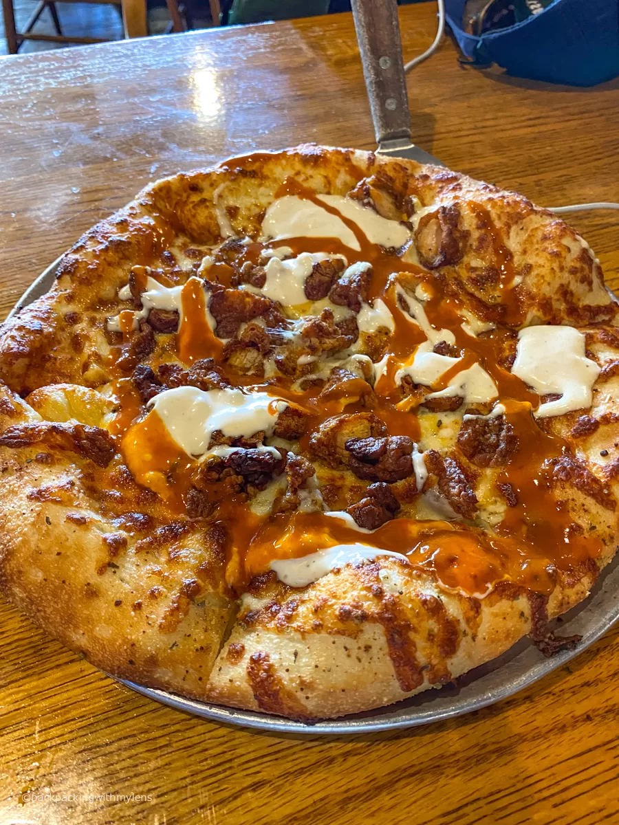 On our way back, we stopped at Pearl Street Grill & Brewery to try some Buffalo-style pizza. The restaurant’s facade, made of red bricks, is absolutely gorgeous, and the interior features a cozy diner-style setup with wooden accents and cool collectibles as decor. We ordered the Buffalo Chicken Pizza, topped with chicken fingers, two types of cheese, and drizzles of buffalo sauce and bleu cheese dressing. It was hands down one of the best pizzas we’ve had in the USA! This restaurant was the highlight of our dining experiences on this trip, and I highly recommend stopping by if you’re in the area.